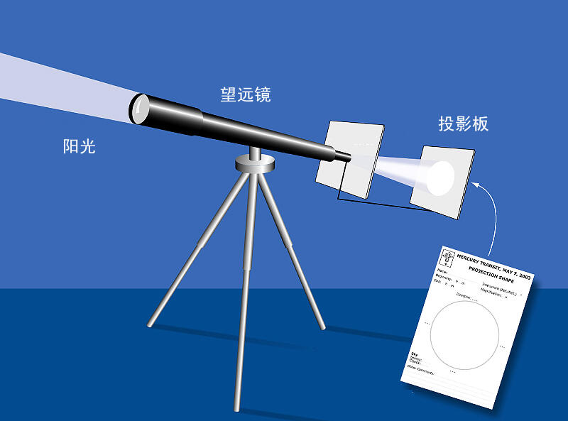 正规的凌日观测要进行描图,因此要选择带有投影屏的天文望远镜。一台带有赤道仪并配备有电跟的望远镜会使你在长时间观测中更加轻松。